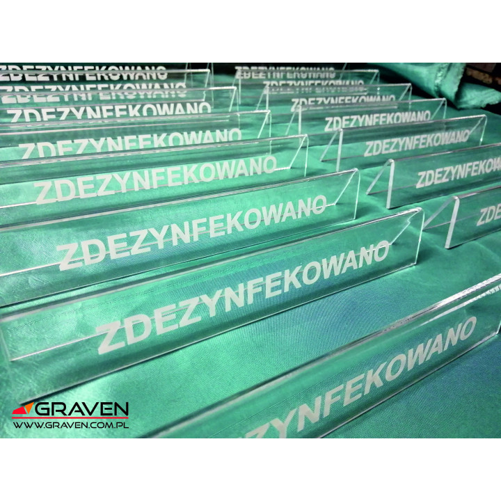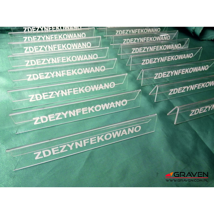 Stojak w kształcie prostokąta z kolorowym nadrukiem "rezerwacja". Wykonany jest z przezroczystego akrylu, na który możemy nanieść dowolnie wybrany logotyp, numerację, napis. Doskonale sprawdzi się w każdym lokalu zarówno jako dekoracja oraz praktyczny element.