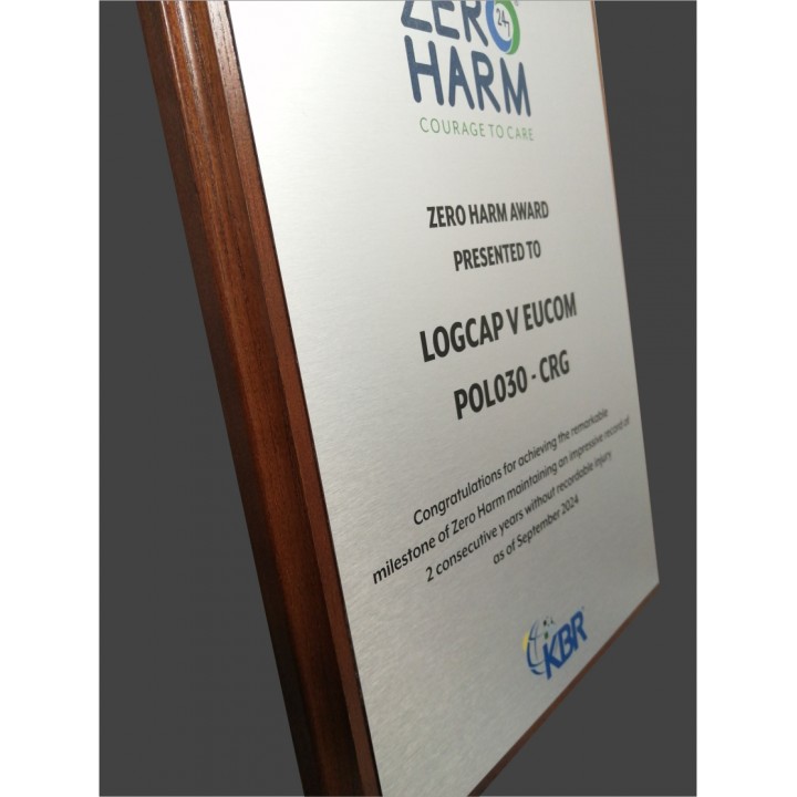 Tabliczka składa się z formatki aluminiowej z nadrukiem UV naklejonej na podkładzie wykonanym z litego drewna bukowego lub dębowego. UWAGA! Nie jest to tani zamiennik jak np. płyta MDF. Jest to prawdziwe drewno.